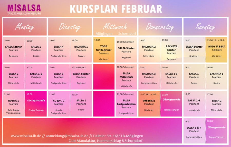 Kursstart: Dienstag 10.2.2026 20 - 21 Uhr